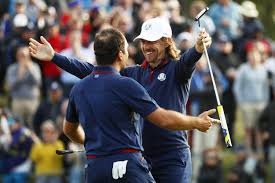 | Europe had a hero partnership in Fleetwood and Molinari as they score 2 of Europe's 5 points. |